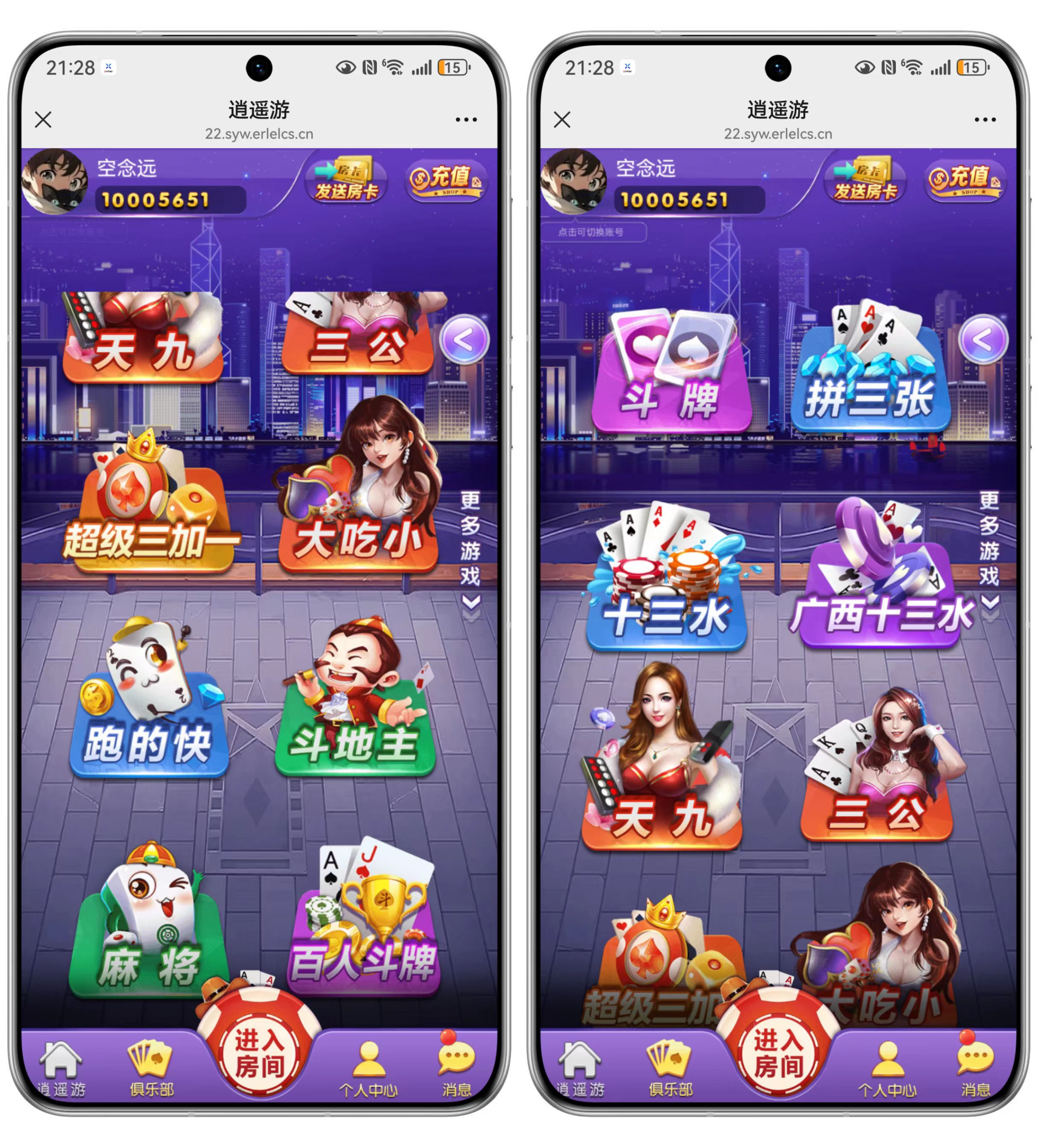包含游戏:斗牌,拼三张,十三张,天-九,三-公,超级三加一 ,大吃小,跑得快,斗地主,麻将(推倒胡 ),百人斗牌 没有控制但是写了半透源码 需要的可以联系购买 资源下载下载价格500 瓶盖终身VIP免费立即购买统一解压密码:www.xbym.vip 原文链接:https://www.xbym.vip/?p=2514,转载请注明出处。 0 0 分享海报
